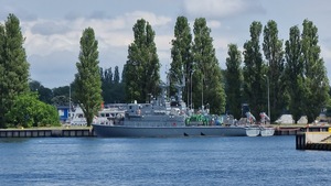 "Przed bramą klasyczna kotwica, którą w co większe uroczystości nawet malują. Tutaj kręcono sceny z filmu "Bilet na księżyc""