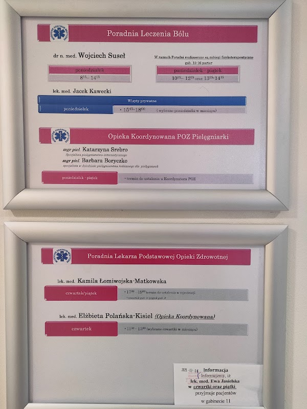 Zespół Poradni Specjalistycznych to wieloprofilowa placówka oferująca kompleksowy zakres opieki medycznej, obejmujący poradnie specjalistyczne, diagnostykę obrazową oraz opiekę długoterminową. Pacjenci szczególnie doceniają wysoki standard opieki w poradniach specjalistycznych, takich jak diabetologiczna, oraz profesjonalne podejście personelu w zakresie medycyny sportowej i rehabilitacji. Na wyróżnienie zasługuje przyjazna atmosfera w punkcie pobrań, gdzie personel wykazuje się doskonałym podejściem do najmłodszych pacjentów, minimalizując ich stres. Obsługa w rejestracji jest oceniana jako życzliwa i pomocna, co pozytywnie wpływa na ogólne doświadczenie pacjenta. Z relacji części osób wynika jednak, że placówka mierzy się z pewnymi wyzwaniami w obszarze komunikacji organizacyjnej. W opiniach pojawiają się głosy dotyczące nieaktualnych informacji o personelu na stronie internetowej oraz trudności w porozumiewaniu się z personelem podczas dyżurów weekendowych. Według niektórych pacjentów, proces informowania o zakresie usług w ramach wizyt prywatnych oraz sprawność obsługi systemów informatycznych przez kadrę dyżurującą wymagają usprawnienia, aby uniknąć nieporozumień dotyczących wystawiania dokumentacji medycznej.